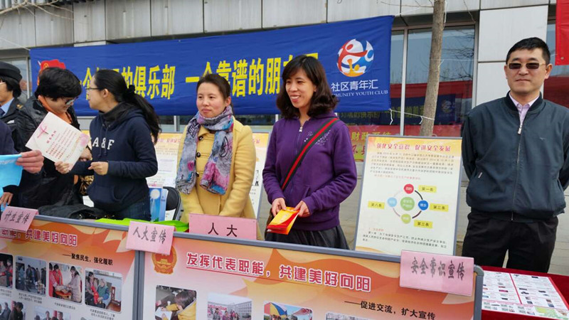 向阳街道人大办在现场设立了人大咨询、宣传台,辖区人大代表郝春红、赵爽全程参加了活动,活动吸引了600多名居民积极参与,现场发放人大宣传册300余份,发放宣传纪念品200份,并现场与居民就地区发展及建设进行交流、征求意见。